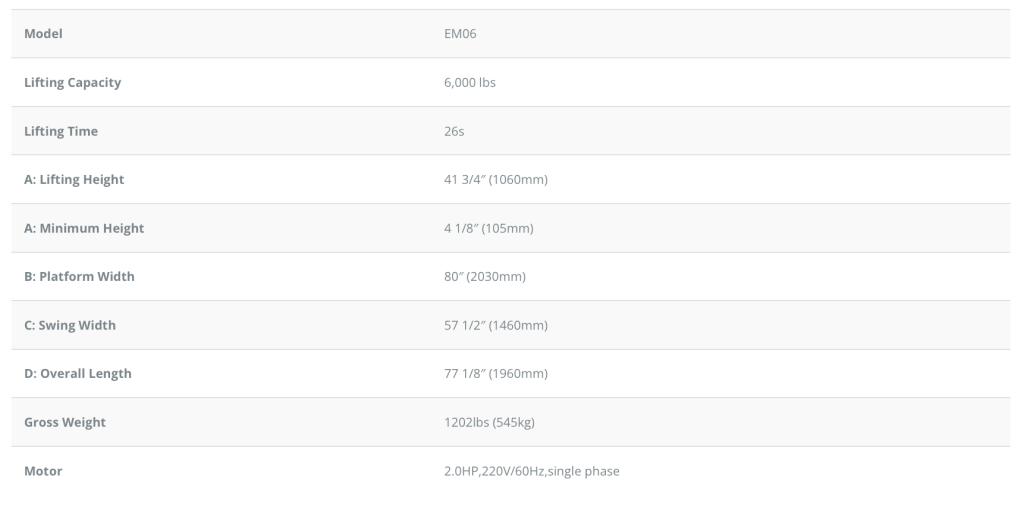 EM06 Portable Mid Rise Lift